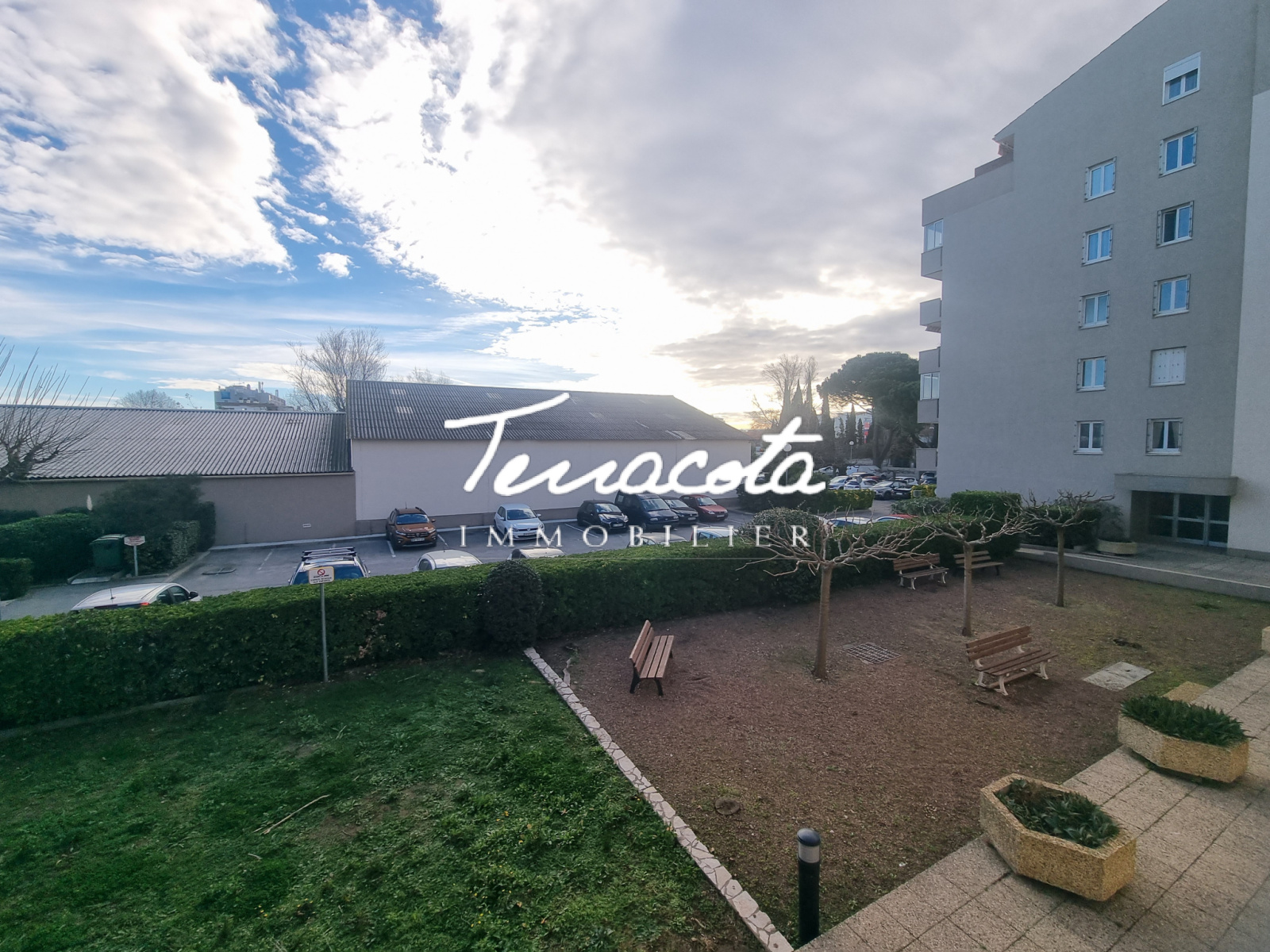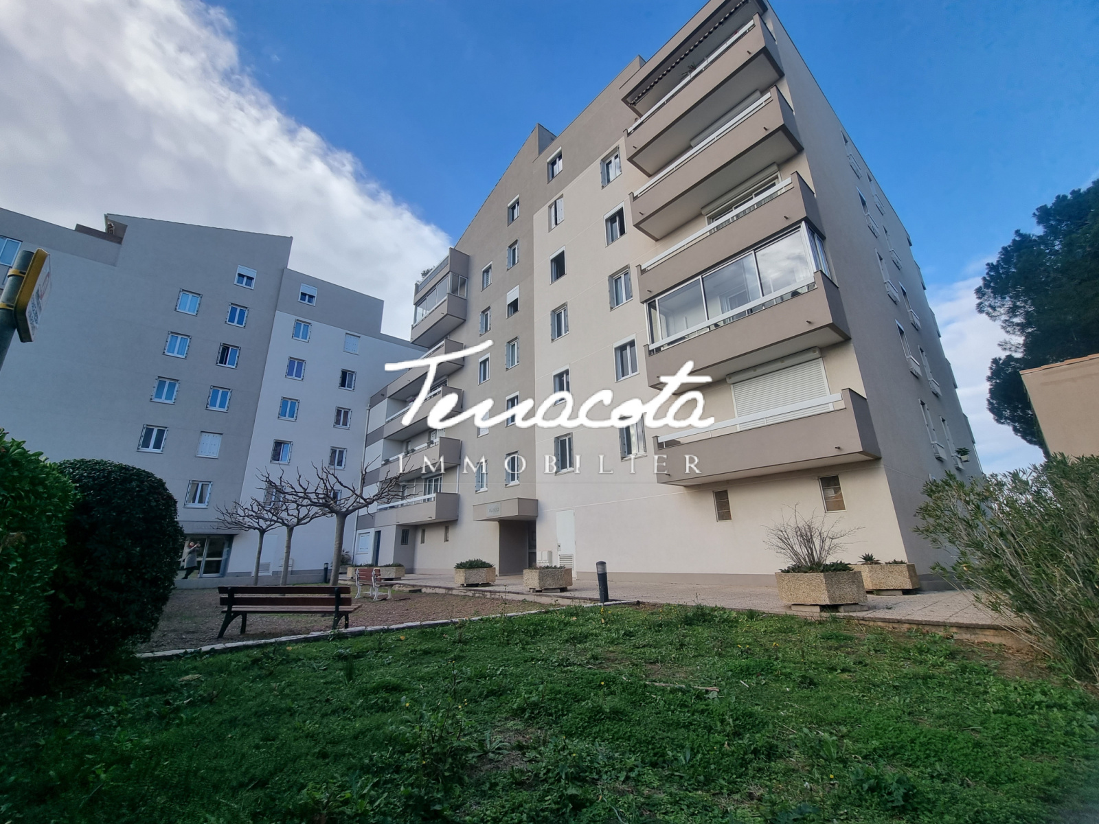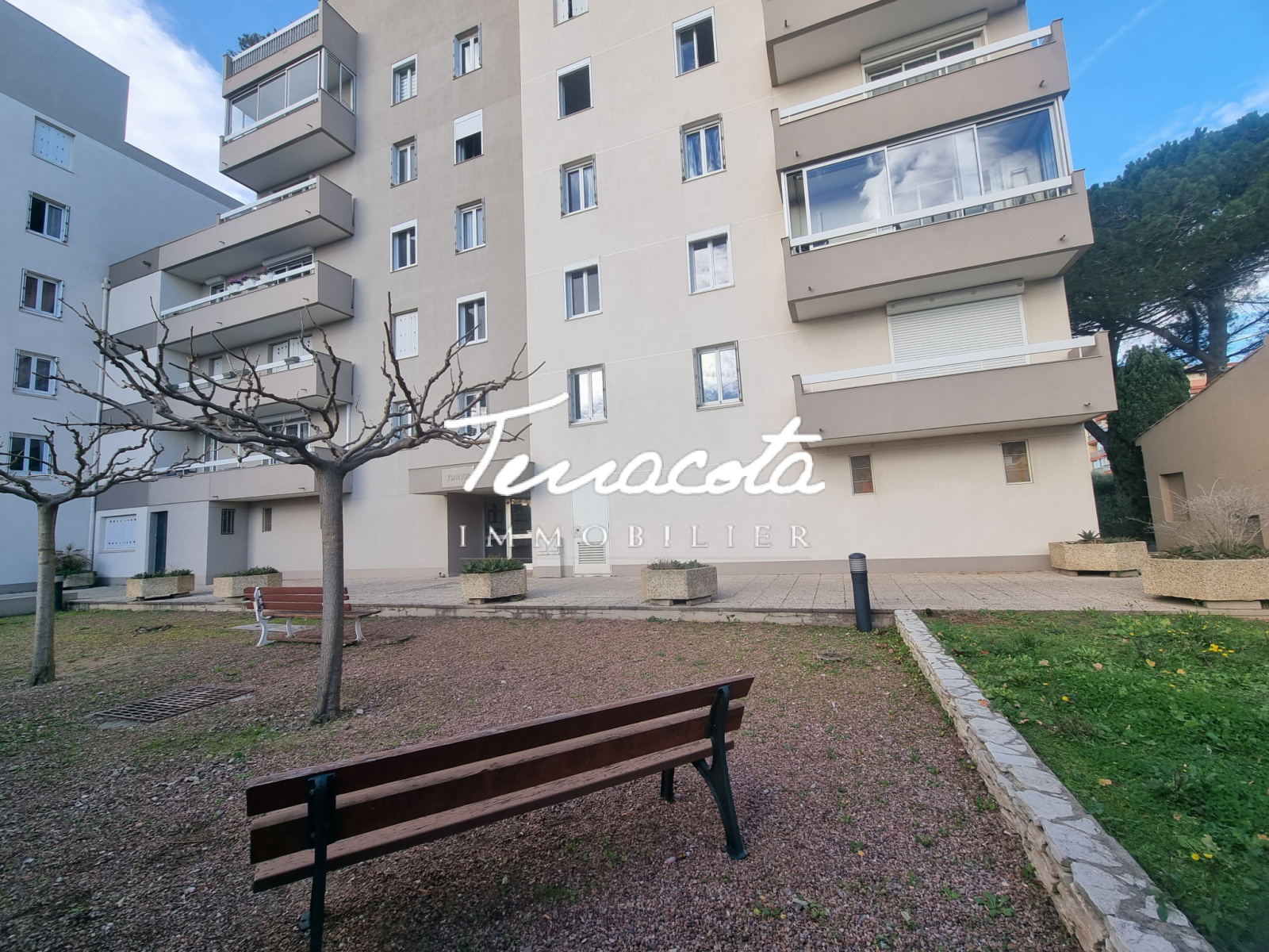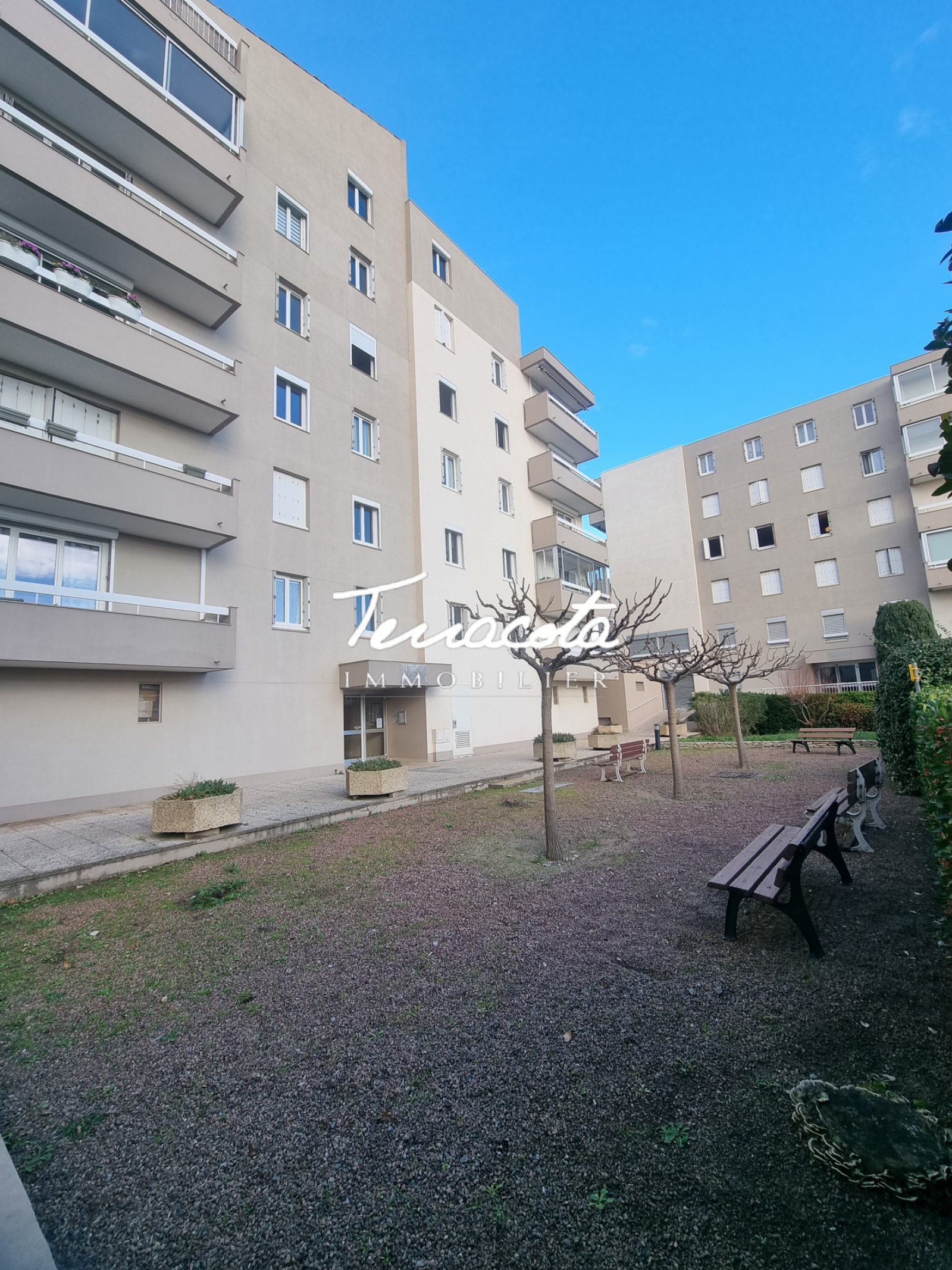 cet appartement est au premier étage avec ascenseur dans une résidence au calme,fermée avec vue sur le parc de la résidence..